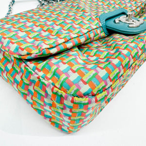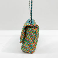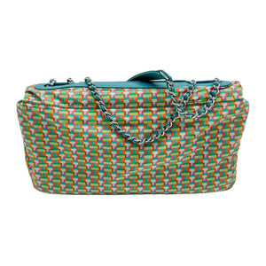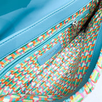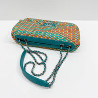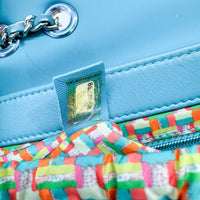 2016-2017 Classic Flap Turquoise Blue Leather with Colorful Rain Cover Shoulder Bag
