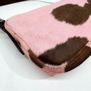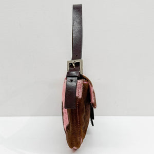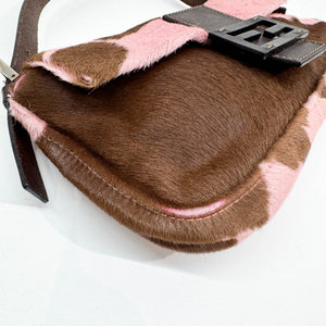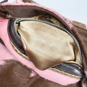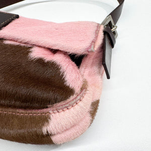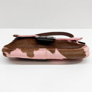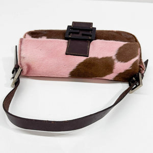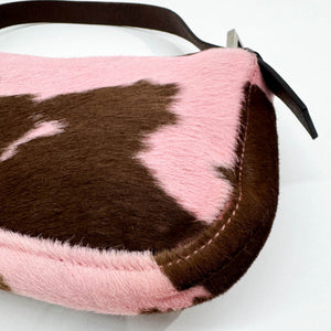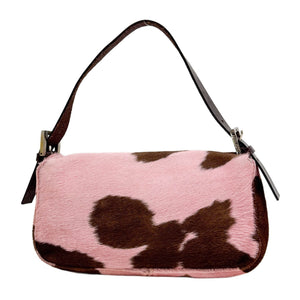Baguette Pink & Brown Cow Print Pony Hair Shoulder Bag