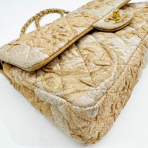 Classic Double Flap 2012-2013 Matelasse Gold Floral Brocade Cotton Shoulder Bag