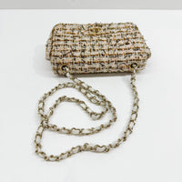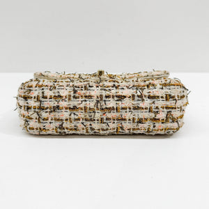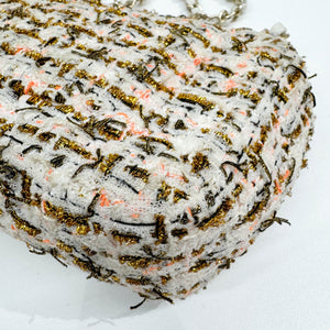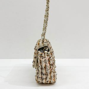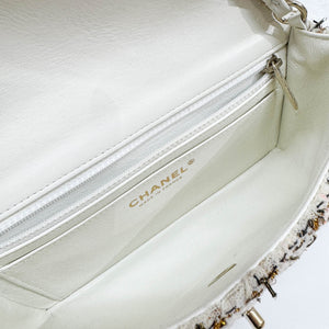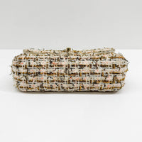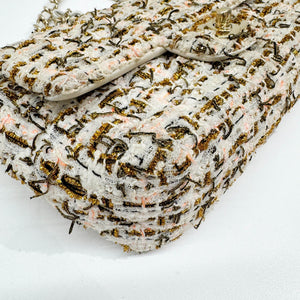Classic Flap 2019 White & Gold Matelasse Tweed Shoulder Bag