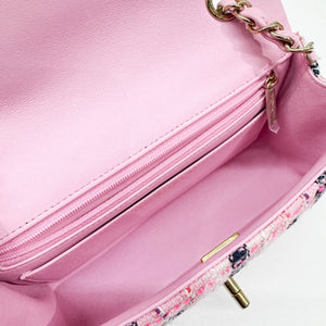 Classic Flip 2021-2026 Matelasse Pink Tweed Shoulder Bag
