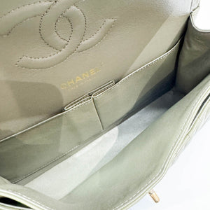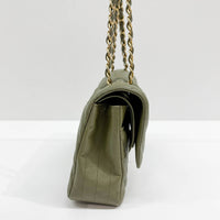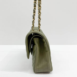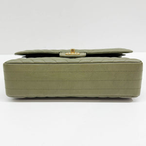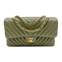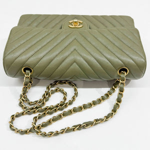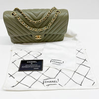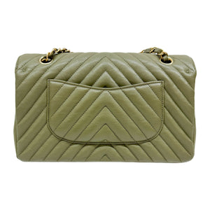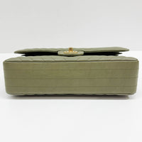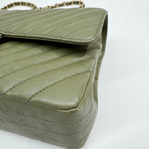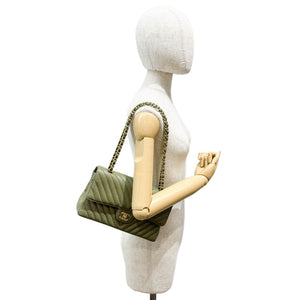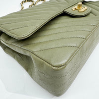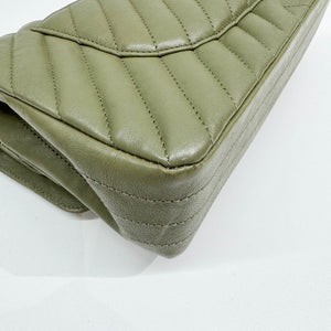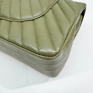 Double Flap Olive Green Chevron Lambskin Leather Shoulder Bag