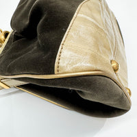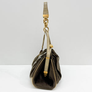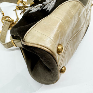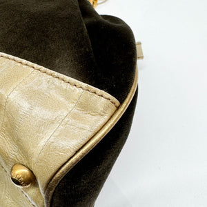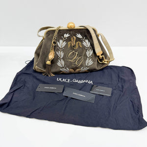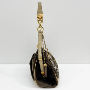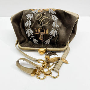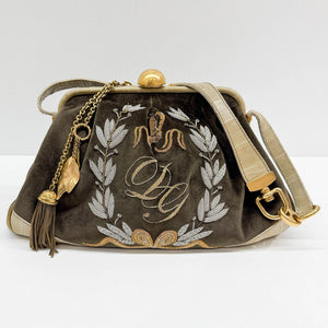 Embroidery Olive Green Velvet Shoulder Bag