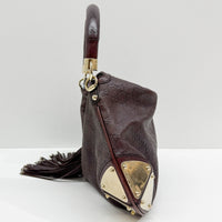 Editor Note : The soft, embossed calfskin leather of this shoulder bag creates a visual texture that enhances its understated silhouette. In a warm brown hue, the design exudes elegance, while the clochette adds a touch of refinement. This piece is a seamless blend of sophistication and practicality, ready to enhance your everyday style.