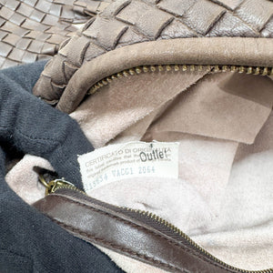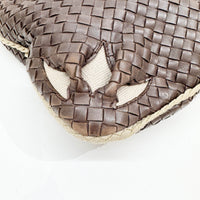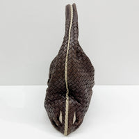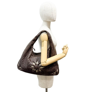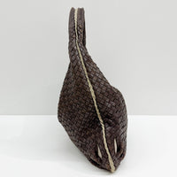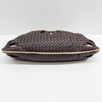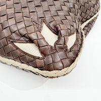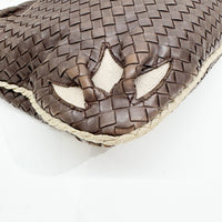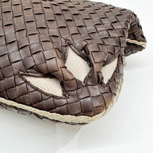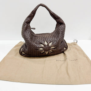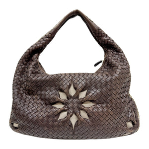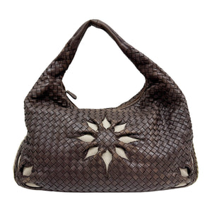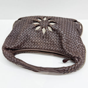 Intrecciato Flower Brown Leather Shoulder Hobo Bag