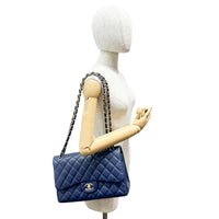 Jumbo Classic Double Flap 2017-2018 Blue Matelasse Leather Shoulder Bag